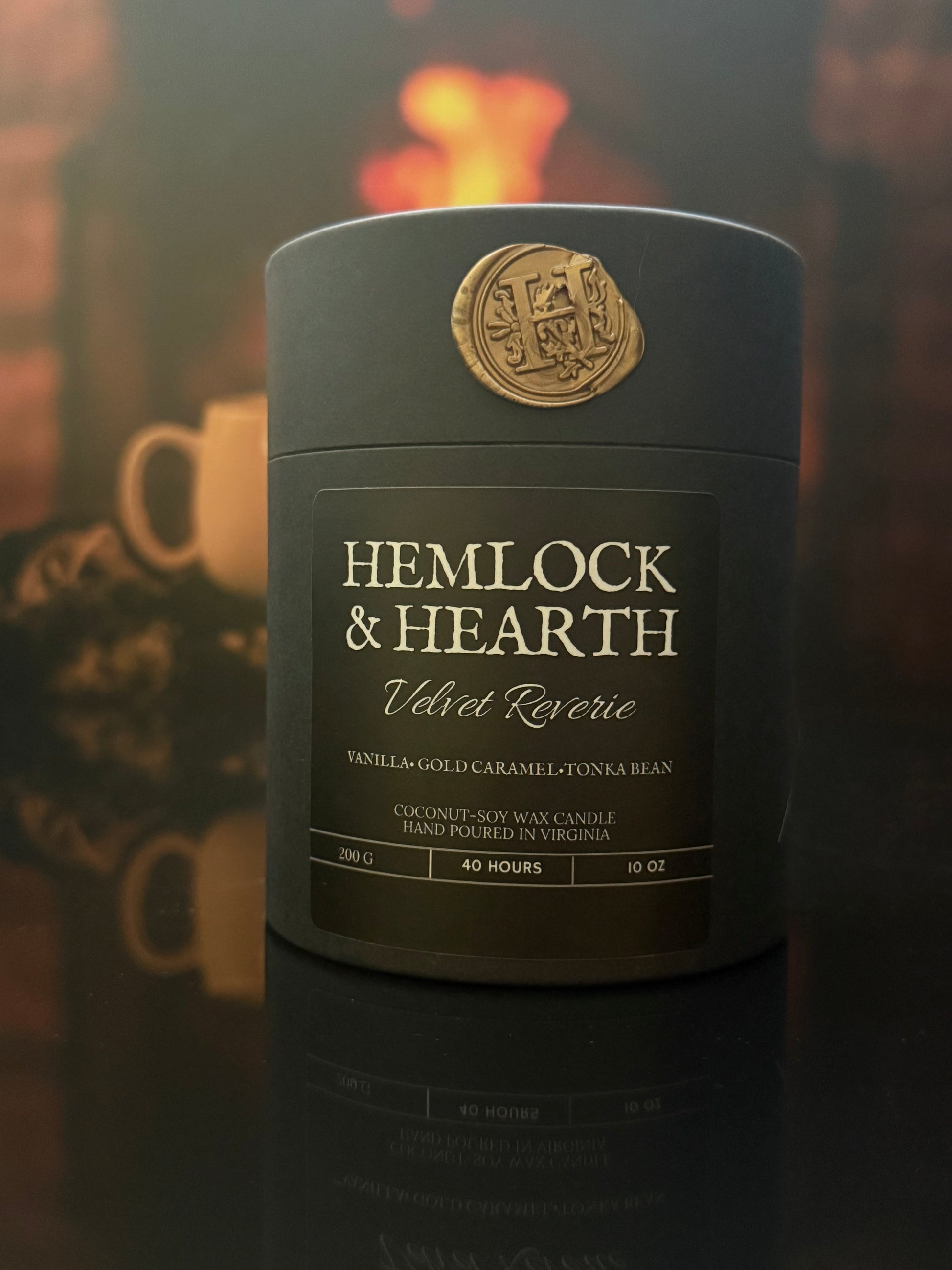 Each Hemlock & Hearth candle is hand-poured into a frosted amber  tumbler jar a clean, minimalist vessel that glows warmly as it burns. The jars are sleek yet weighty, offering a luxurious experience with every light.